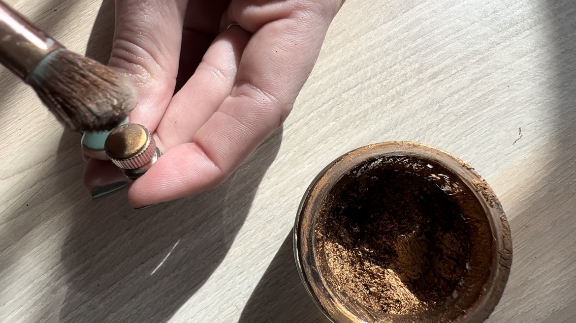 Het draaitopje van de pepermolen wou ik ook goud maken dus bracht ik hier nog een beetje gilding wax op aan.