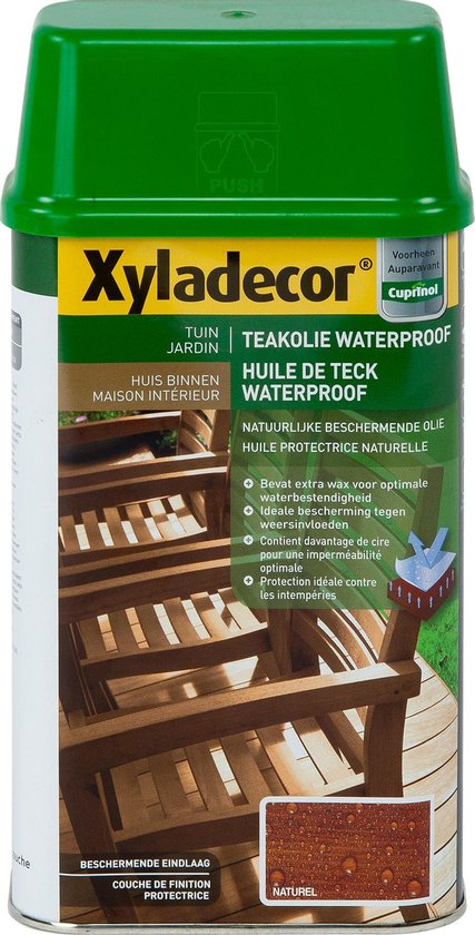 Nu de tuintafel is geschuurd en schoon is, is het tijd om het teakhout te behandelen. Overweeg een hoogwaardige teakolie of -lak die geschikt is voor buitengebruik. Ik gebruikte de teakolie van Xyladecor Breng de olie of lak gelijkmatig aan met een kwast of doek en volg de instructies op de verpakking. Laat de tafel goed drogen voordat je hem in gebruik neemt.