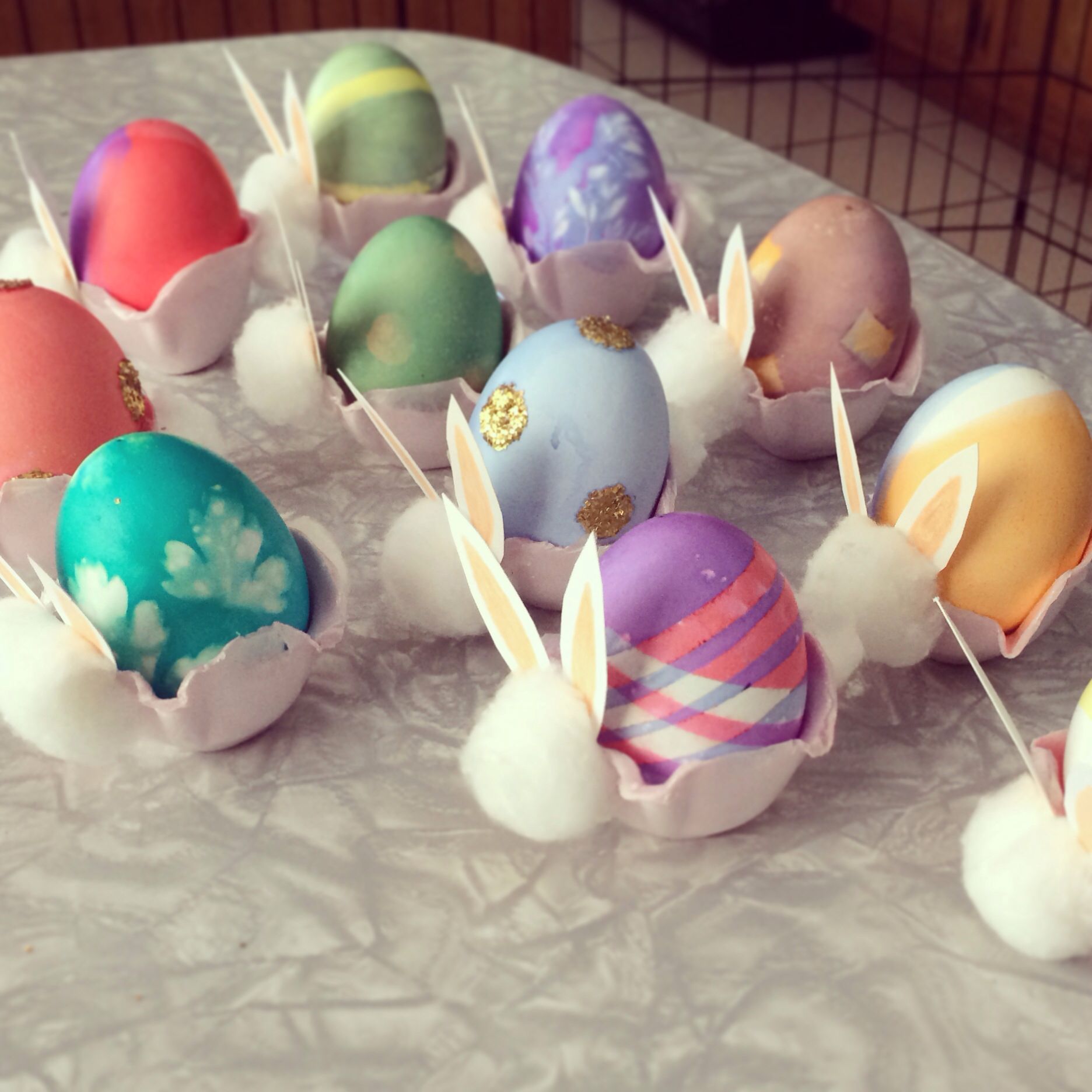 - Afwerking: Zet je eitjes op de rug van je paashaas en voila je paas knutselwerk is klaar.